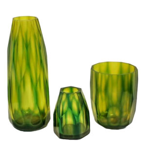 Chisel Cut Glass Vase Set of 3