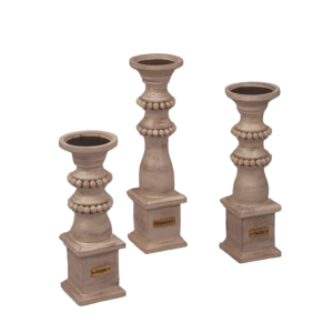 Wooden Pillar Candle Holder Set of 3